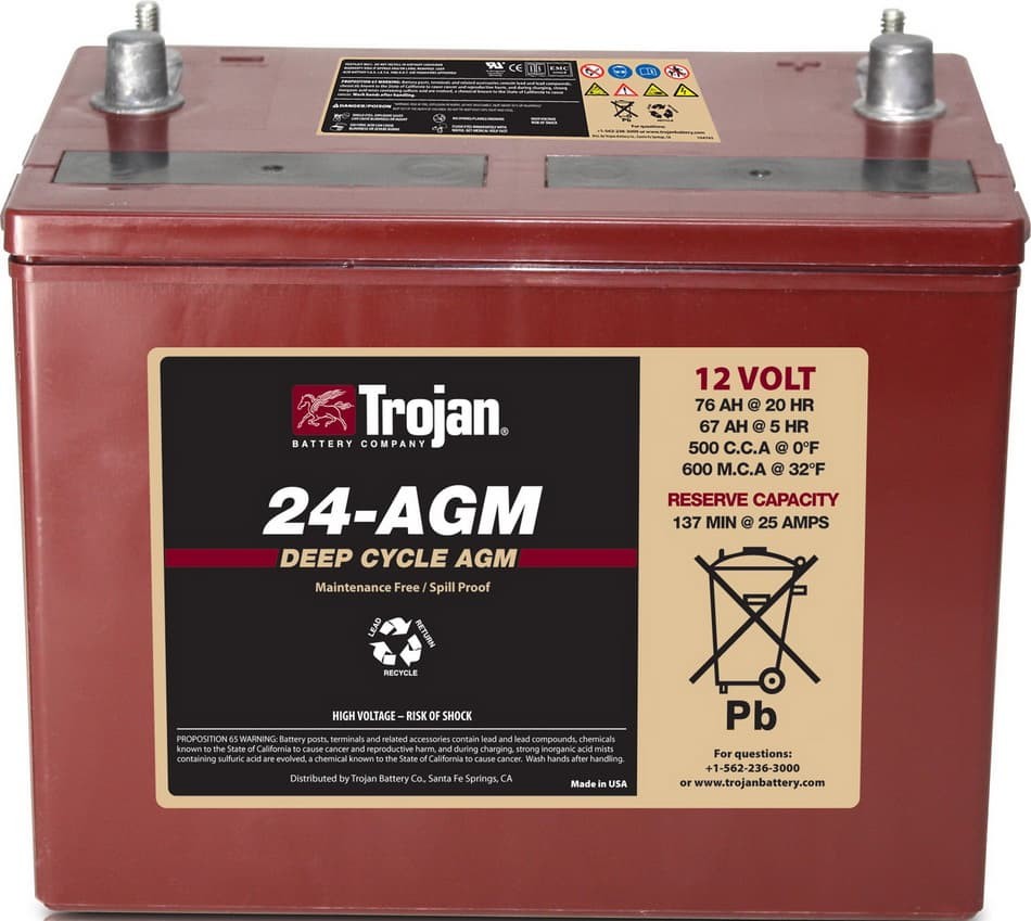 Уже более 85-и лет, Trojan Battery— имя, пользующееся наибольшим доверием в технологии глубокого цикла — предлагает AGM-батареи (Электролит Адсорбированный на Твердом Носителе) для приложений с тяж_лыми цикличными нагрузками.