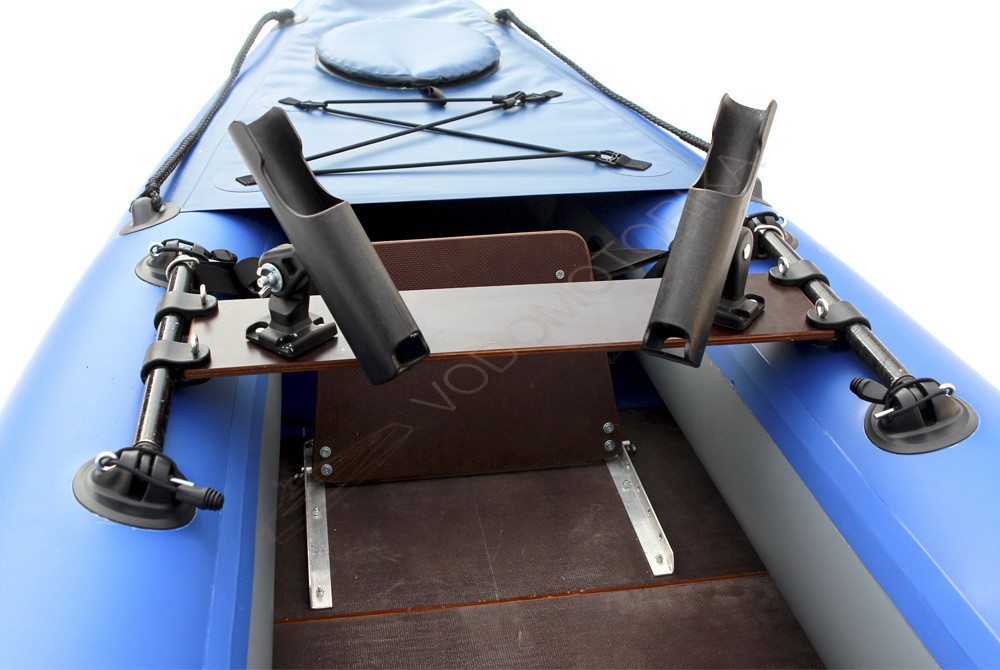 Для спиннингов и удочек предусмотрены специальные крепежи на деке байдарки, которые могут использоваться для троллинга.