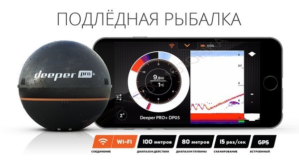 "Компактный эхолот для iOS и Android устройств является эффективным и удобным устройством для профессионального и любительского использования. Беспроводное Wi-Fi- соединение с устройством позволяет сканировать рельеф и структуру дна на расстоянии до 100 метров. Благодаря GPS- модулю, встроенному в эхолот, возможно создание карт глубин с берега. На экране можно наблюдать глубину, температуру, спрогнозировать появление рыбы в том или ином месте. Вы можете удаленно управлять устройством, анализировать информацию и менять параметры работы эхолота. Deeper Sonar Pro+ - это обязательный атрибут современного рыбака.