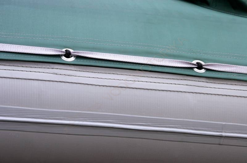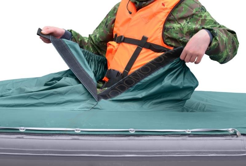 Фартук для надувной байдарки Северянка-45 служит защитой от дождя и брызг. Оснащен несрывными юбками с застежкой на "липучке". Фартук крепится шнуровкой к петлям на бортовых гребнях лодки. Возможно исполнение на 1-2 посадочных места