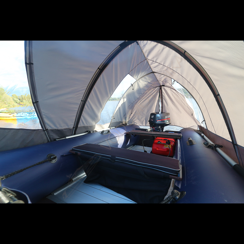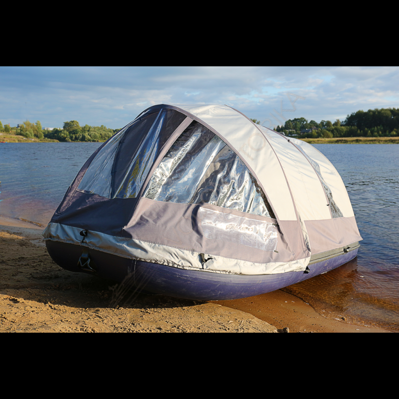 Ходовой тент для лодок предназначен для защиты пассажиров и вещей от солнца, дождя, снега, ветра, брызг при движении или на стоянке. Имеет множество модификаций.