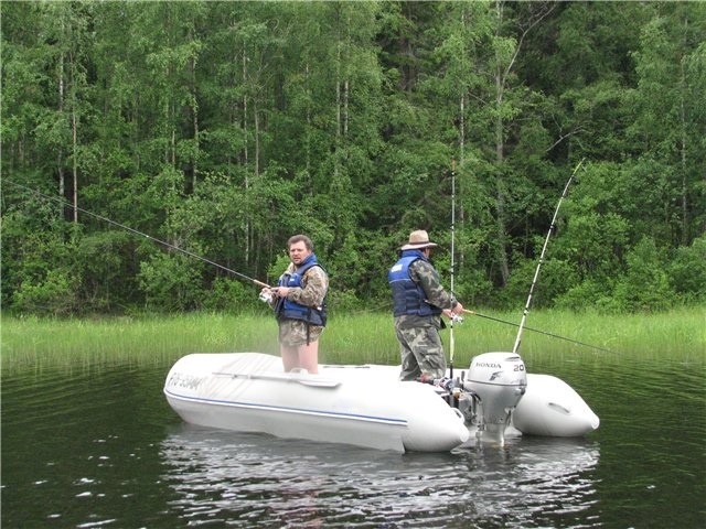 Лодка имеет надувное днище низкого давления по типу надувного матраца, не уступающее по жесткости и комфорту твердым настилам.