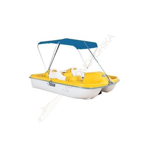 Водный велосипед имеет желтый цвет кокпита и белый – корпуса снаружи.