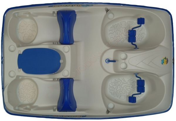 Водный велосипед имеет белый цвет кокпита и синий – корпуса снаружи.