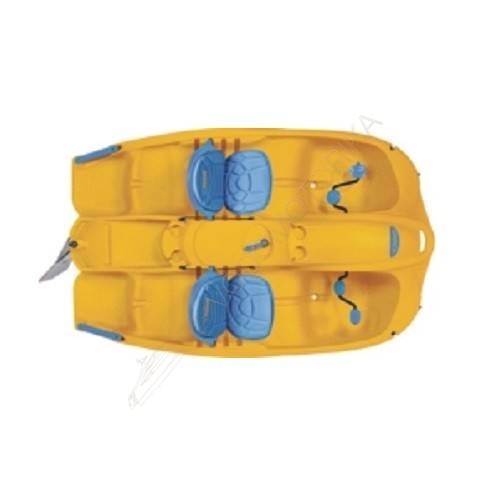 В корпус встроены блоки плавучести из пенопласта. Водный велосипед имеет желтый цвет.