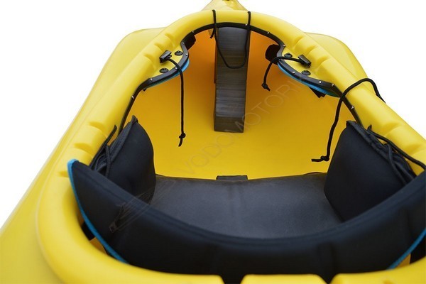 Каяк оснащён убирающимся килем, что позволит на спокойных плёсовых участках снизить рысканье, а перед порогом не вылезая из каяка, убрать киль, втянув его в специальную нишу в корпусе, и начать штурм препятствия.
