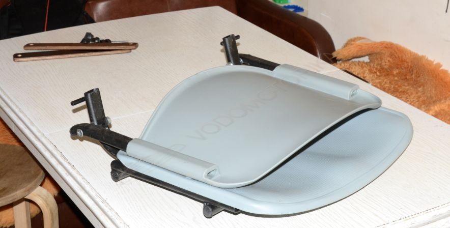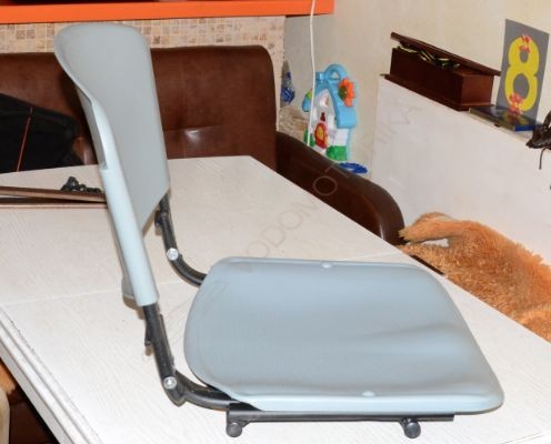 Кресло для лодки ПВХ выполнено из пластика, стальной трубы и влагостойкой фанеры.