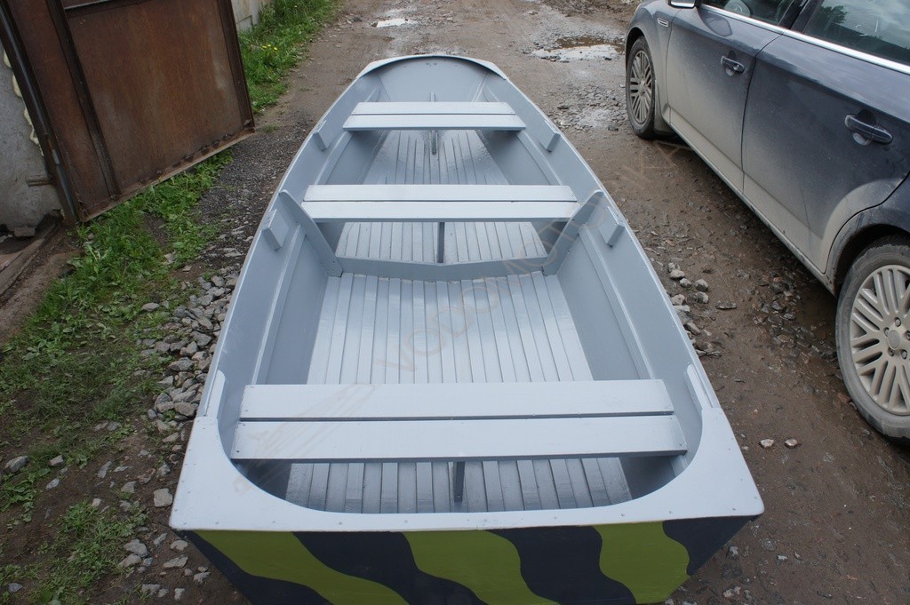 Пол лодки покрыт окрашенной решетчатой сланью.