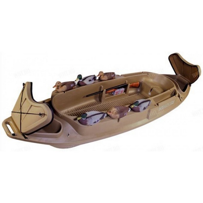 Пластиковая лодка поставляется в «болотно»-коричневом цвете.