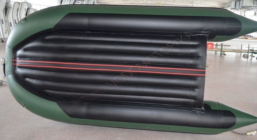 Диаметр баллонов лодки 450 мм, 3 отсека (+ дно), швы клееные внахлест, с накладкой.
