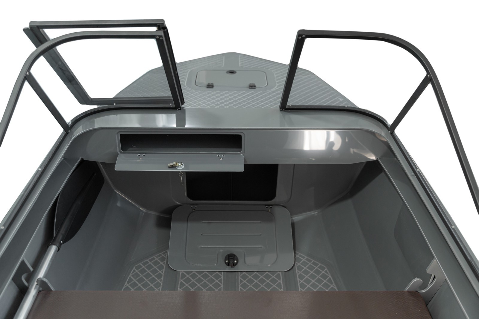 В носовой и кормовой части лодка оснащена рундуками.