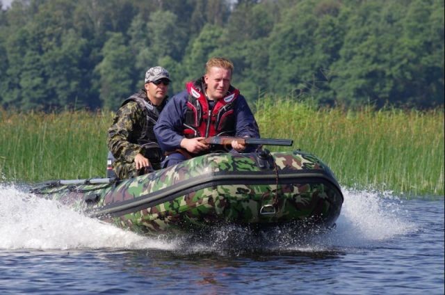 Надувная лодка имеет камуфлированный окрас.