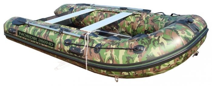 Моторная модель с надувным килем, классической компоновки. Купить надувную лодку NORDIK 360 HD стоит тем, кому нужна незаметность на фоне береговой растительности.