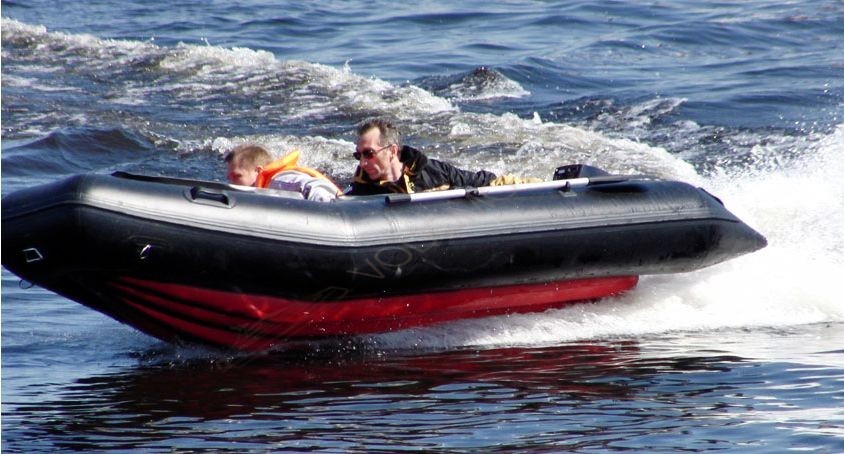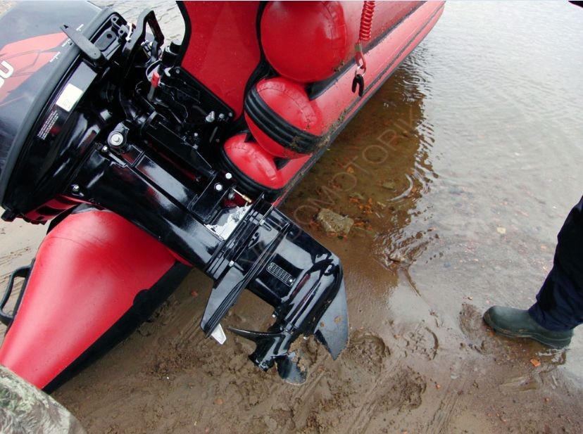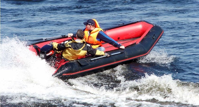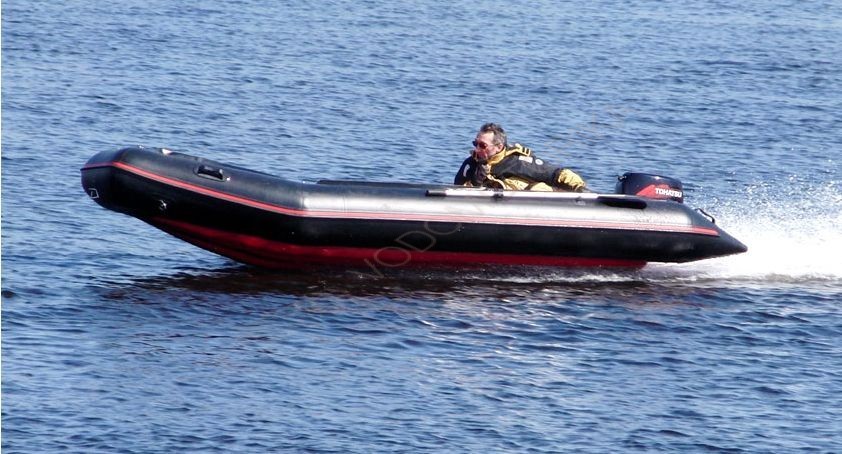 Надувная лодка оборудована четырехточечным креплением под бак с топливом (два на днище и два на борту).