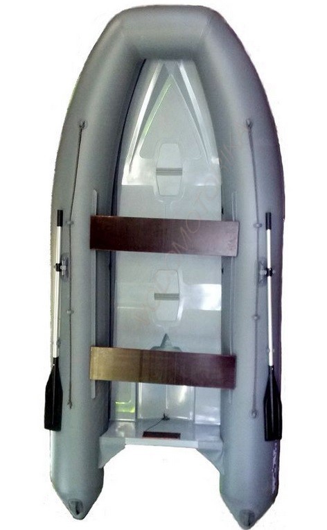Лодка имеет жесткий пол из стеклопластика с противоскользящим рельефом.