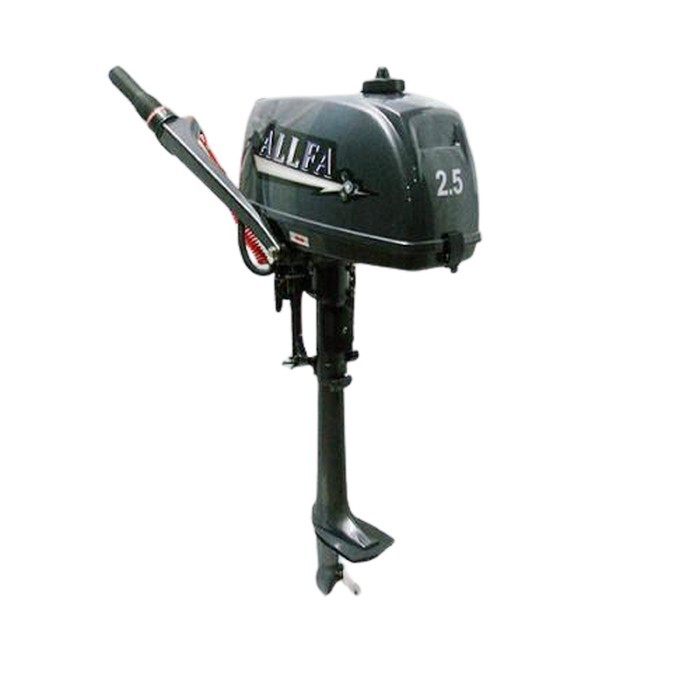 Подвесной мотор ALLFA T2.5S развивает мощность 2.5 л.с. при объеме 61 см3.