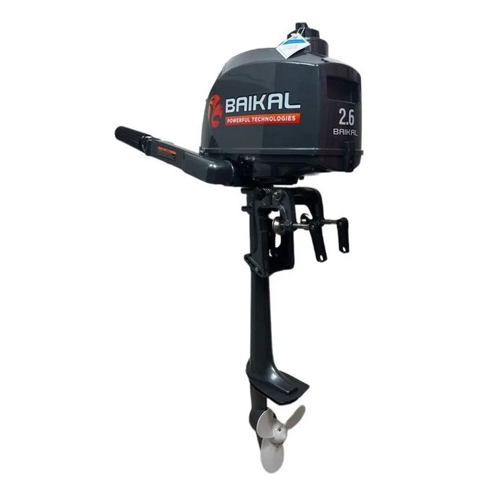 Двухтактный подвесной лодочный мотор BAIKAL 2.6 HP изготовленный с использованием японских технологий имеет простую конструкцию, благодаря чему обладает высокой надежностью и простотой в обслуживании. Ручка акселератора находится на румпеле. Очень надежный и экономичный мотор, а по соотношению мощности и расхода топлива обходит многие более дорогие аналоги. Мотор Baikal 2,6 л.с. имеет принудительную трансмиссию, завел и поехал вперед.