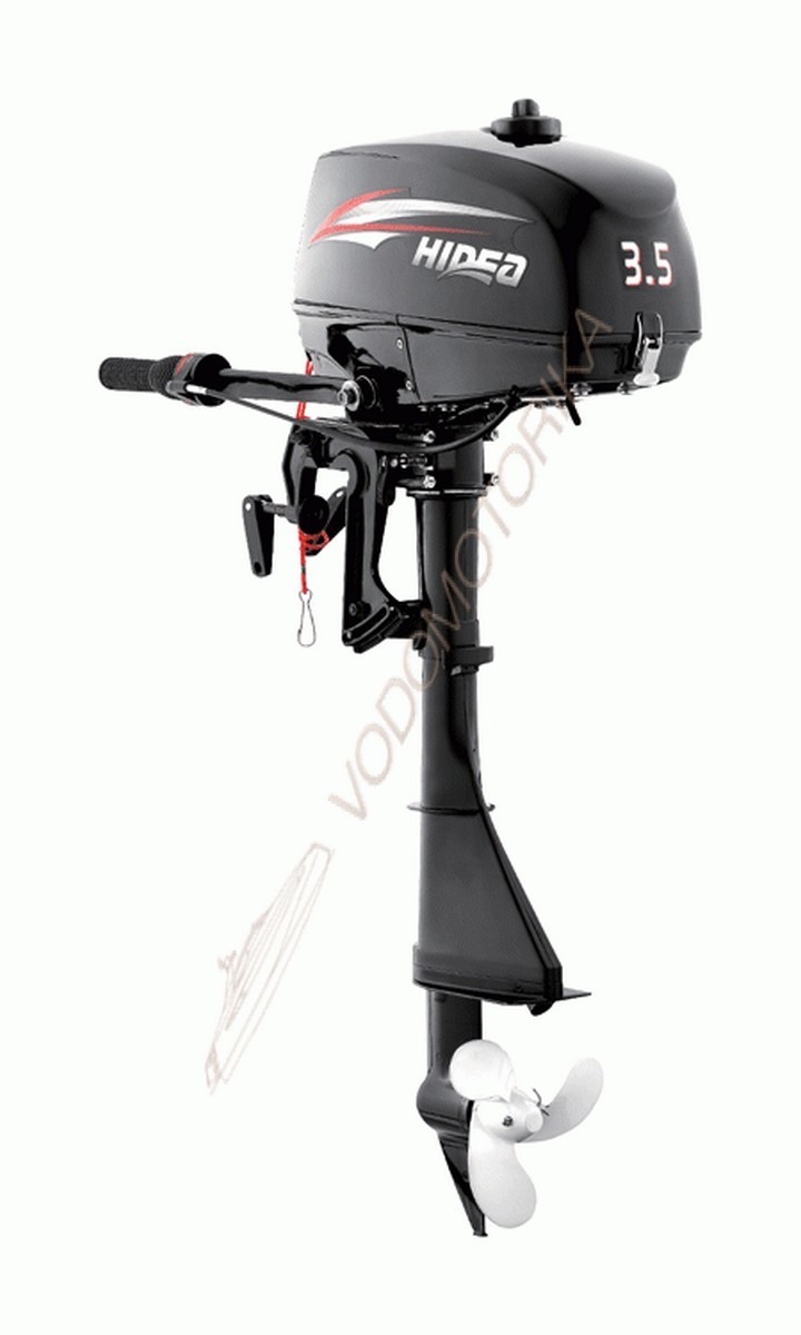 Подвесной мотор Hidea HD3.5FHS развивает мощность 3.5 л.с. при объеме 74.6 см3.