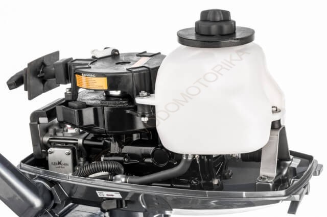 Двухтактный лодочный мотор Mikatsu M5 FHS имеет румпельное управление (ручка газа на румпеле). Запуск двигателя производится вручную. Имеется 3 передачи (передняя, нейтральная, задняя). Для безопасности предусмотрен трос аварийной остановки.