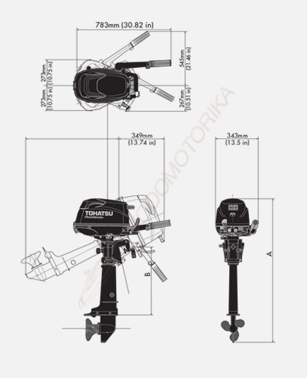Подвесной лодочный мотор Tohatsu MFS6C S-S рассчитан под высоту транца 381 мм и имеет вес 25.6 кг.