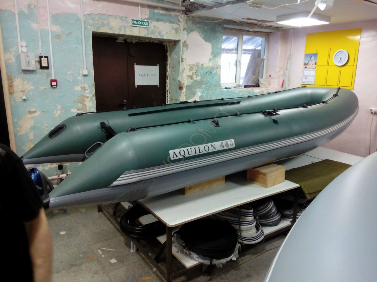 Низ днища (снизу лодки) обладает плотностью 1250 г/м2 и усилен защитным слоем ПВХ.