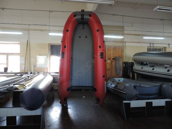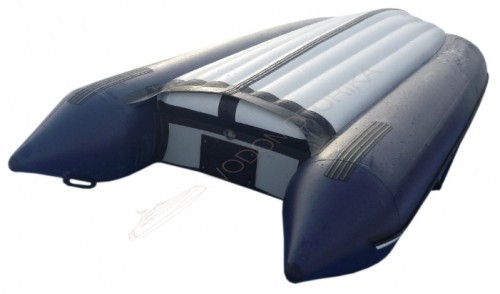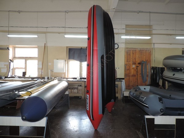 Лодка Compas 430 с надувным дном низкого давления (нднд) с заданной килеватостью.Способ крепления надувного дна к баллонам исключает взаимный износ и запатентован.