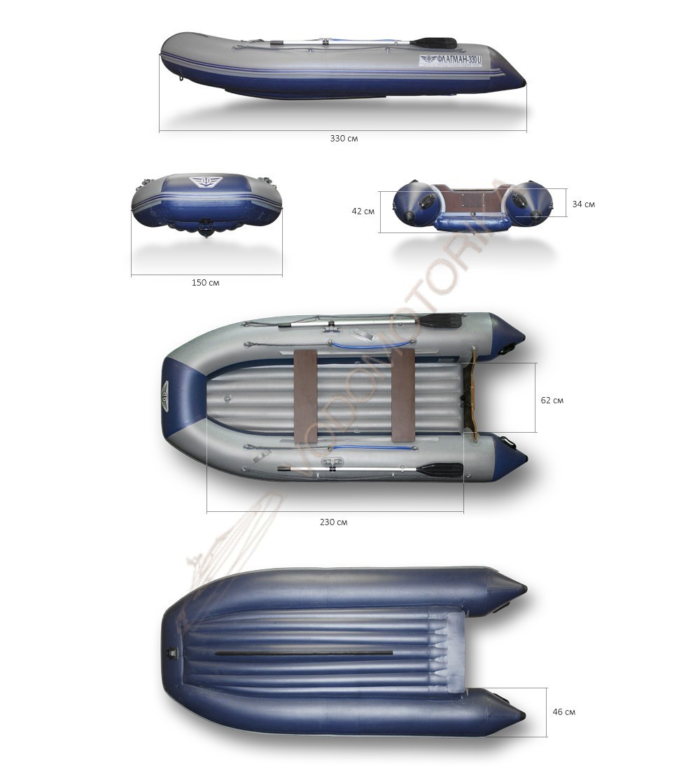 Флагман 330U имеет длину 3.30 м при ширине 1.50 м.