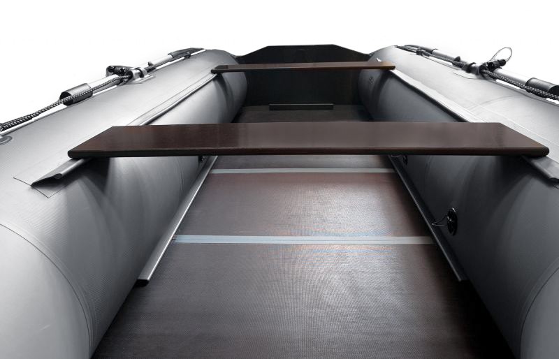 Лодка комплектуется сплошным фанерным настилом типа «книжка» толщиной 9 мм, пол имеет противоскользящее покрытие.