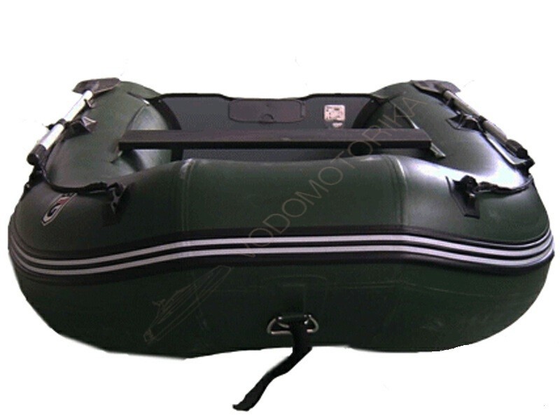 Надувная лодка оснащена стационарным жестко вклеенным транцем.