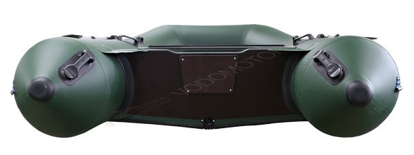 Диаметр баллонов лодки 390 мм, 3 отсека (+ киль). Швы склеены встык и усилены с обеих сторон дополнительными ПВХ накладками.