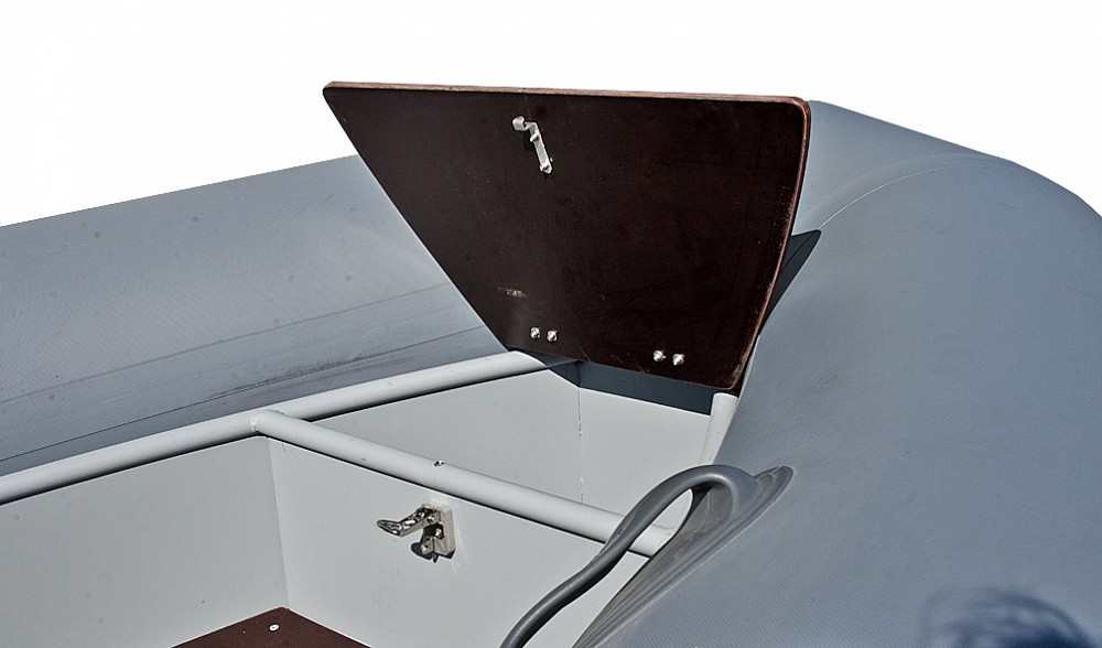 Алюминиевая лодка имеет жесткий транец, который позволяет мотору висеть и работать даже при спущенных баллонах (это позволит судну в случае чрезвычайной ситуации остаться на плаву при благоприятных погодных условиях).