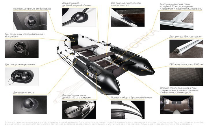 Баллоны Ривьера 3200 СК изготовлены из армированного пятислойного ПВХ плотностью 900 г/м2.