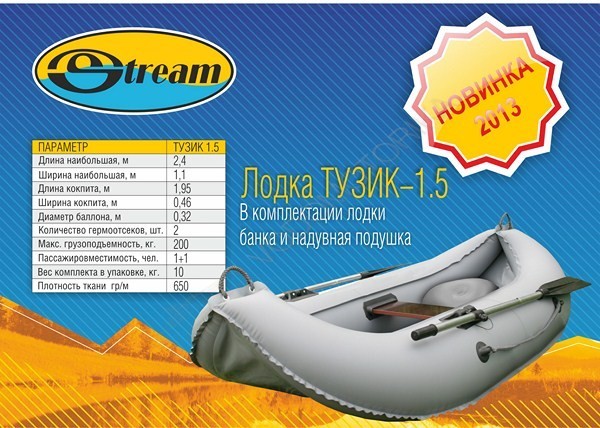 Купить надувную лодку Stream Тузик-1,5 стоит тем, кому нужна надежная и неприхотливая в эксплуатации лодка.
