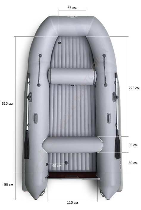 При использовании с подвесным мотором его мощность не должна превышать 40 л.с.