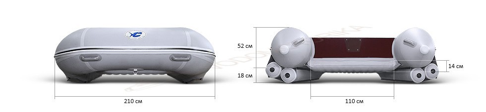 Диаметр основных баллонов лодки 54 см.