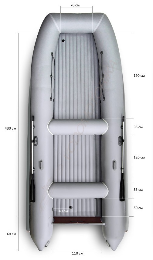 Лодка насчитывает 3 герметичных отсека (+ 2 скеги, + 1 пол, + 2 пуфика).