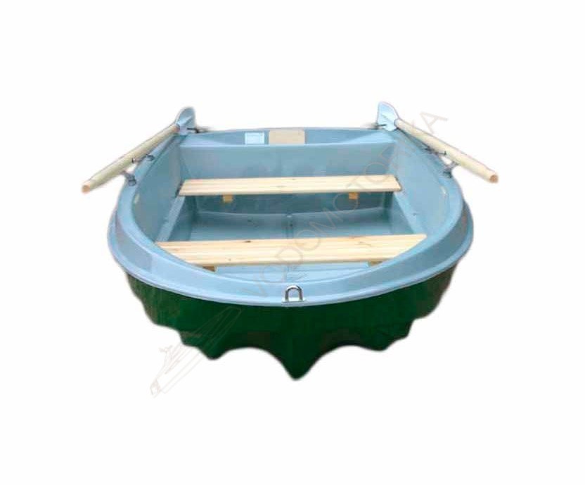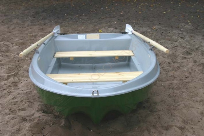 Пластиковая лодка поставляется в зеленом цвете со светло-зеленым кокпитом (артикулы в таблице 60014/50007 соответственно).
