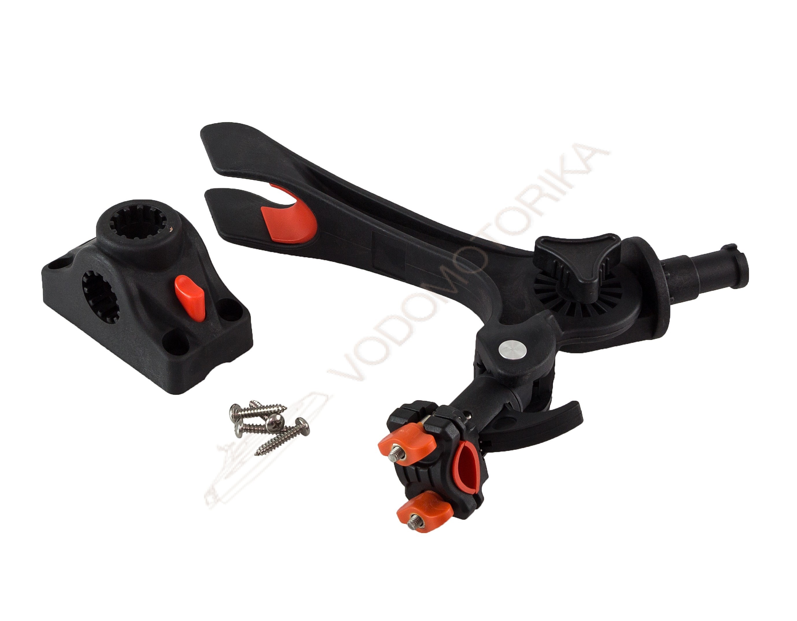 Держатель спиннинга с быстросъёмным фиксатором, который уберегает Ваше удилище от потери во время тряски при движение судна.