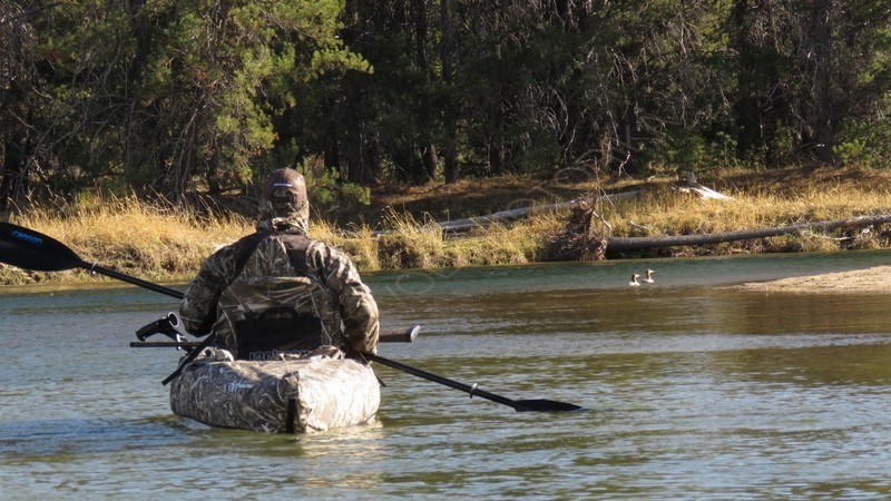 Каяк имеет расцветку, максимальное приближенную по виду к стволу затонувшего дерева.
