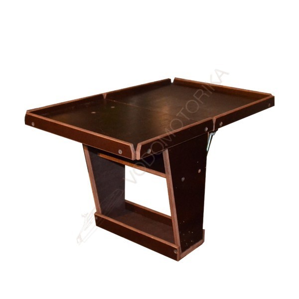 Удобный столик-трансформер для эхолота в лодку ПВХ с полочкой под аккумулятор и дополнительной полочкой для мелочей внутри столика. Столешницы по периметру обрамлена бортиком. Столик выполнен из ламинированной фанеры, торцы пройдены влагоотталкивающей пропиткой. Газовый лифт увеличивает площадь столика в два раза, что позволит максимально комфортно расположить все необходимые для рыбалки аксессуары на нем, в том числе и монитор эхолота. Установка столика на лодку не займет много времени если у вас установлен ликтрос на лодку, при необходимости вы можете самостоятельно приклеить ликтрос в нужном месте и наслаждаться отличной рыбалкой.