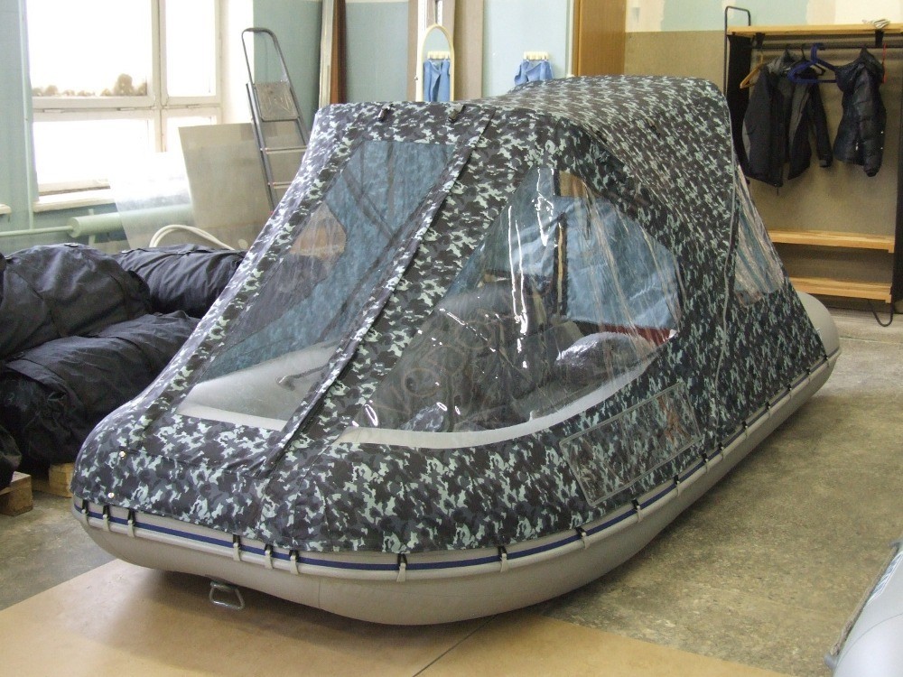 Тент ходовой на лодки Ротан 420, 420М сине-серый камуфляж