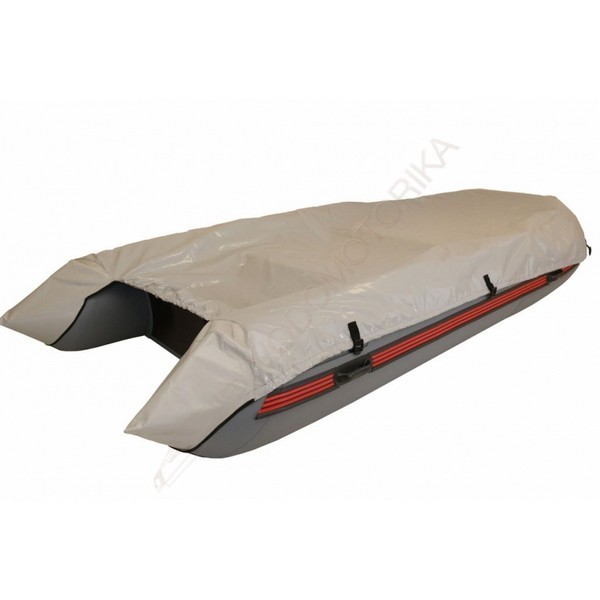 Тент изготавливается из высокопрочного, водонепроницаемого ПВХ материала, способного сохранять форму, не растягивается при намокании и не сжимается при высыхании. Отшивается индивидуально под каждую определенную модель лодки, что исключает парусность чехла во время транспортировки и не допускает скапливания дождевой или талой воды на поверхности.