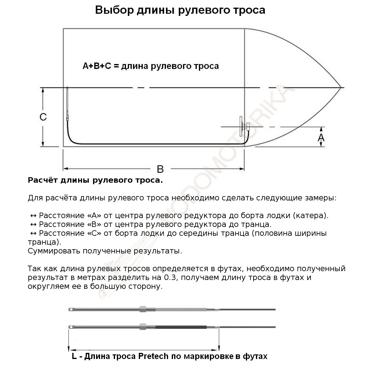 Трос рулевого управления для подвесных лодочных моторов, диаметр троса 16 мм, минимальный радиус изгиба 203 мм.