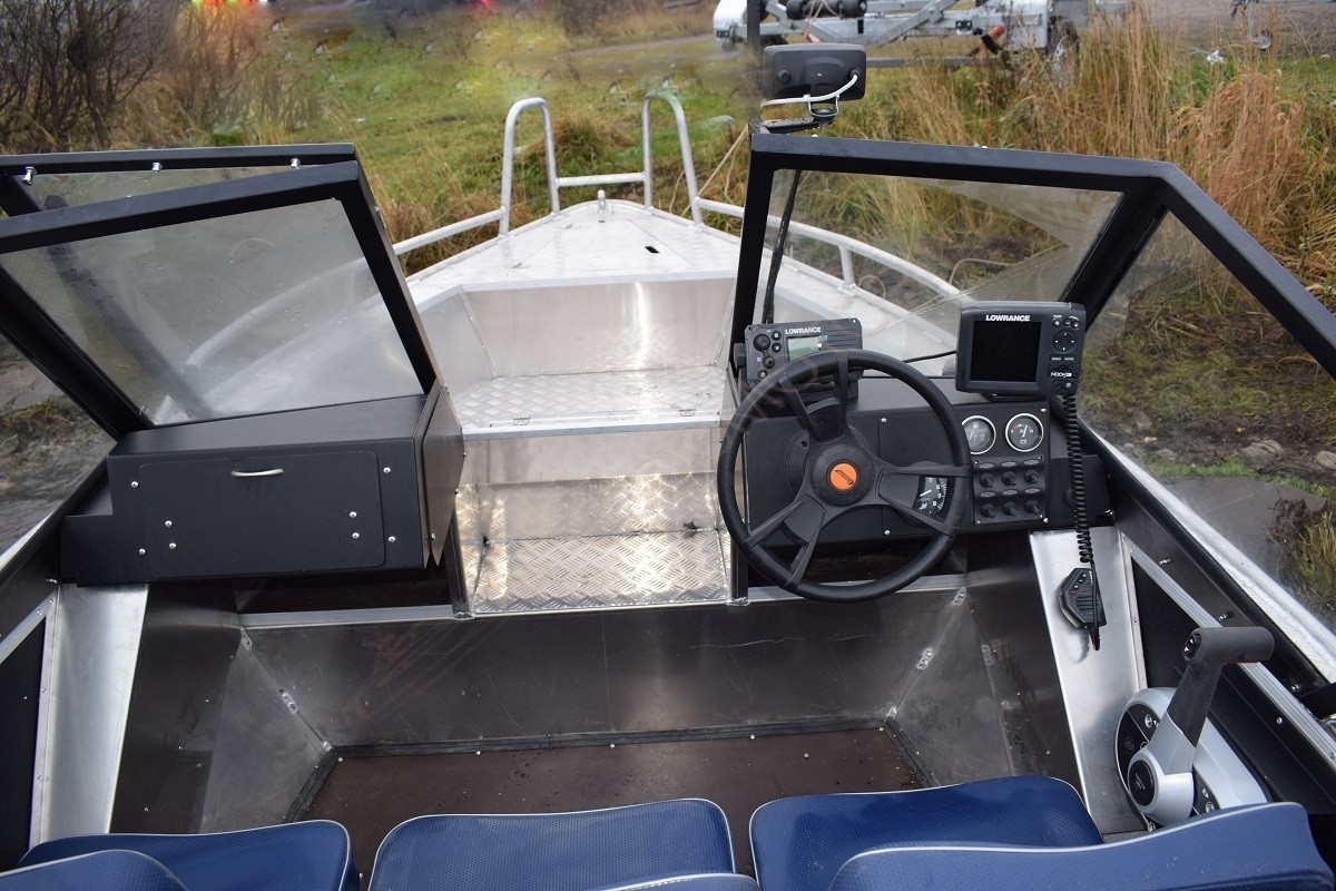 - Электрика (прибор вольтметр, указатель уровня топлива, гнездо 12В -2шт., блок переключателей, выключатель массы, клеммы, место под аккумулятор, автоматическая трюмная электрическая помпа, навигационные огни, стойка топового огня съёмная или на ветровом стекле);