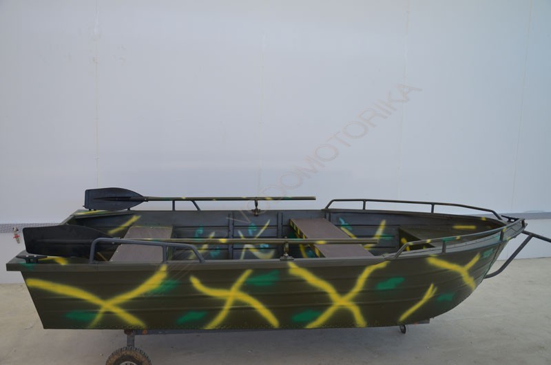 Лодка ОХОТНИК 350 имеет длину 3.50 м при ширине 1.50 м.