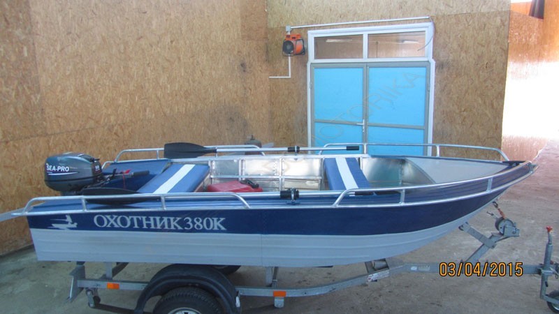 Лодка ОХОТНИК 380К имеет длину 3.80 м при ширине 1.70 м.