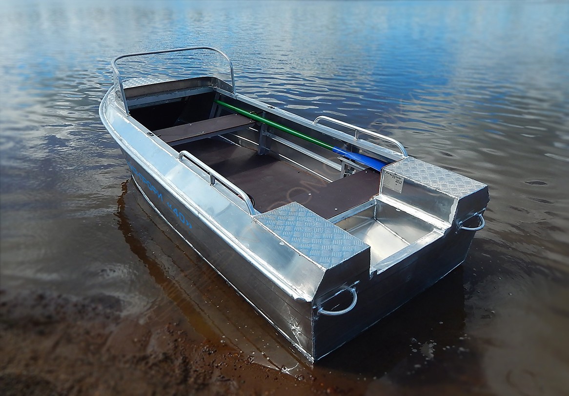Алюминиевая лодка Вятка Профи 40 имеет длину 4.0 м при ширине 1.40 м.
