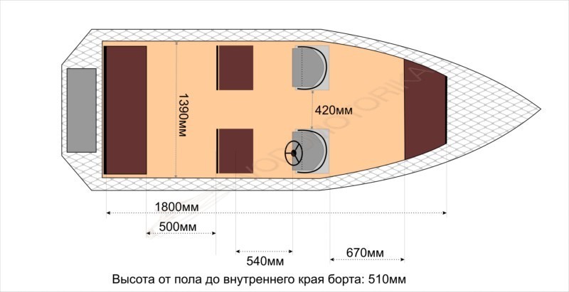Лодка комплектуется пайолом из водостойкой фанеры.