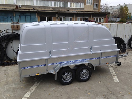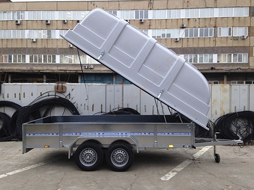 При полной массе прицепа в 750кг, его собственная масса составляет 280 кг, что позволяет перевозить груз массой до 470 кг. Двухосный (маятниковая ось), две параболические рессоры, газо-лифт/домкрат подъёма кузова (самосвал).