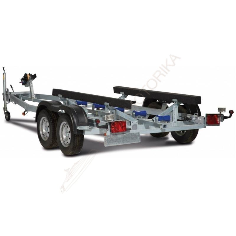 Модель Дельфин 6,5 с резино-жгутовой подвеской предназначен для перевозки лодок и катеров длиной до 6.5 м. и массой до 1300 кг. Прицеп двухосный с центральной осью, с тормозной системой.